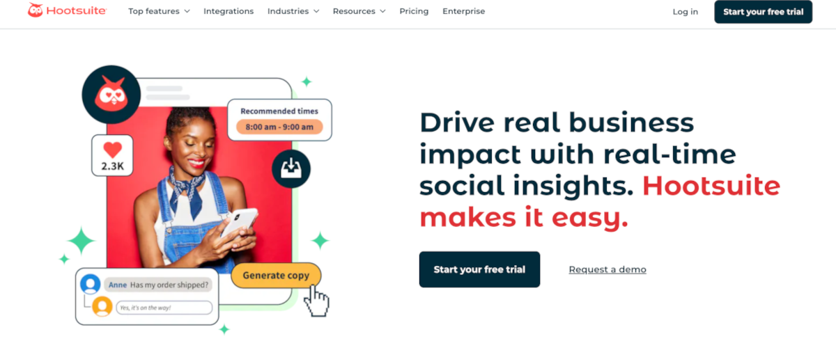 Hootsuite’s advanced analytics help you identify top-performing content and optimize your strategy. Track your reach, engagement, and even revenue growth with ease. Companies using Hootsuite have reported impressive results: